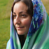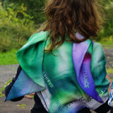 The scarf UNFURLING invites the wearer to open up the many possible qualities written along the edge and carries an encouragement to explore the wide range of qualities that can be opened up in living life, qualities such as joy, principles and liberation.