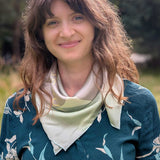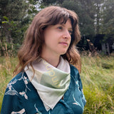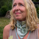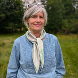 The scarf KINDNESS is a bandana-style scarf in light tones, featuring the word kindness as part of the design. At 65 x 65 cm (25 x 25"), it’s an easy accessory to wear or keep close — a quiet reminder of a quality that’s always valuable, both for oneself, in meeting others and into the world.