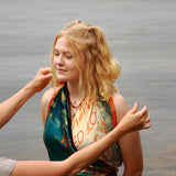 Be careful when you use jewellery with your scarves, as jewellery can easily catch on fine fabric. If you use perfume or hairspray, let it dry on you before putting on your scarf – chemicals could affect the fabric over time.