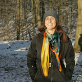Enjoy your scarf. It is a prayer into the world and a prayer to yourself, and it is there to be worn. To maintain its beautiful shine and texture always check the care label for best results as silk requires delicate care and treatment.